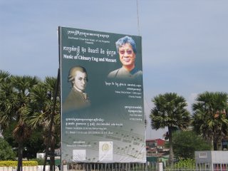 Jeff & Jan ventured in to the city for a very successful TV interview to be seen world-wide by the stations that service the international Vietnamese Diaspora, while others spent their last day finishing shopping lists, practicing, or resting up for the big finale. I used the time to finally spend an hour interviewing our constant traveling companion Dr. Him Sophy, whose beaming countenance has illuminated every room that he has entered since we first met him in Phnom Penh two weeks ago. A distinguished composer and teacher at the Royal University of Fine Arts, I learned more of his impending opera premiere in the States later this year, a work that tells the story of a Cambodian displaced by the Khmer Rouge, and his fascinating relationship with a (yes) rock star…looks like a sure hit, too. Like some of Chinary’s recent music, Dr. Sophy will also be mixing traditional Cambodian music with Western styles, but his opera also uses the electric guitars, keyboards and drums of popular music. It also turns out that the good Dr. is the author of an unpublished 500 page book on Cambodian classical music – written in Russian! (He did his graduate work in Moscow.) Remember that name – we’ll be reading about him in the American newspapers soon, I’m sure.